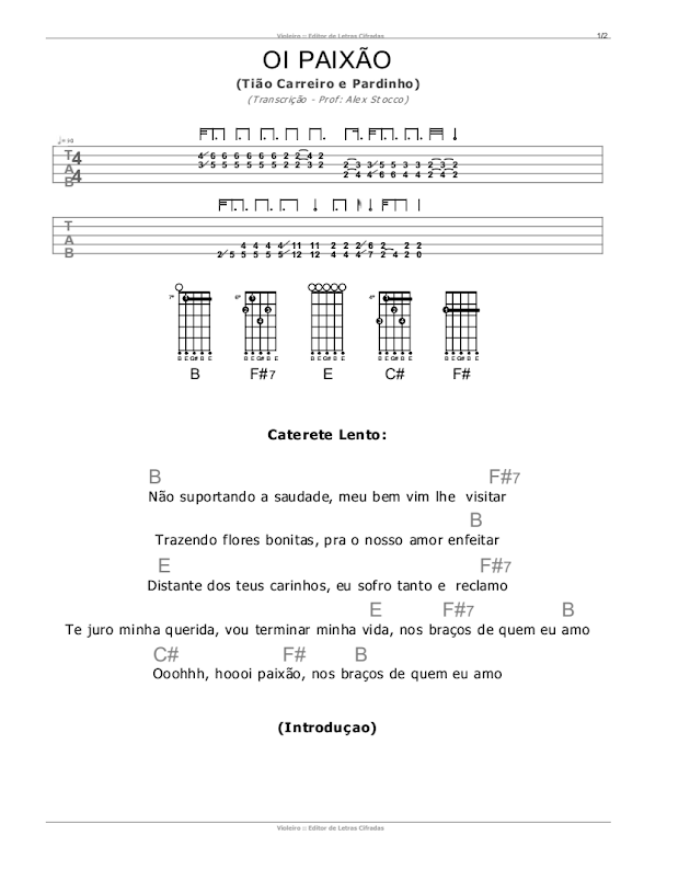 Olá! Seja bem vindo, seja bem vinda, a mais um artigo aqui do BLOGGER VIOLA CAIPIRA DESCOMPLICADA – Professor Alex Stocco trazendo hoje uma música super apaixonada – Oi Paixão, da eterna dupla Tião Carreiro e Pardinho.